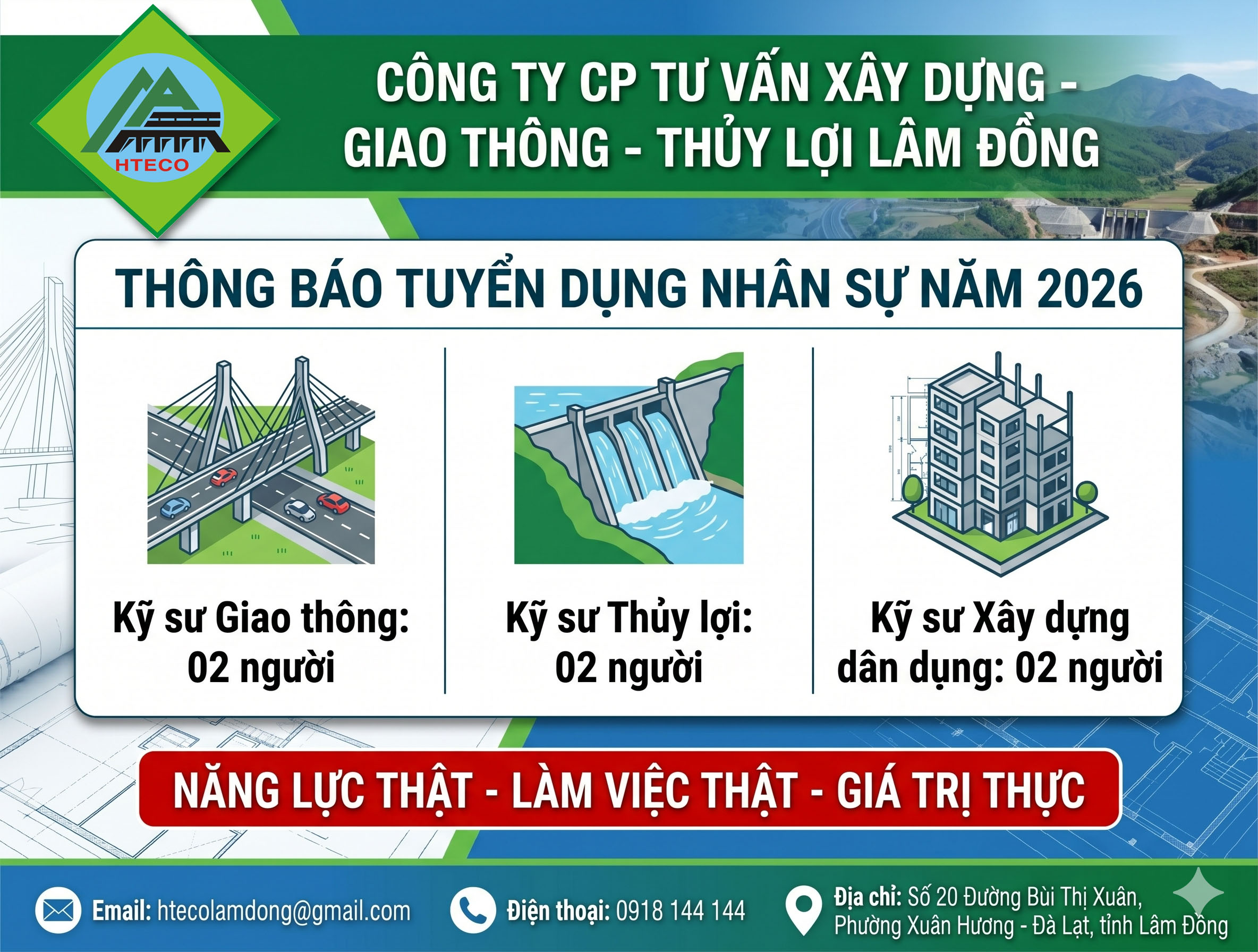 #HTECOLAMDONG #TuyenDungKysu #LamDong #XayDung #GiaoThong #ThuyLoi #Dalat #TuyenDung2026